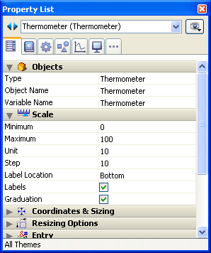 いくつかの固有のプロパティは、プロパティリストの"スケール"テーマで設定します: