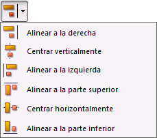 • Verticalmente, los iconos corresponden a las siguientes distribuciones: equidistante a los bordes superiores, centros (vert.) y bordes inferiores de los objetos seleccionados.