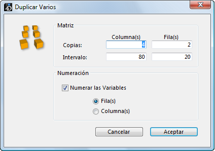 Esta opción está activa sólo si el objeto seleccionado es un variable. Para mayor información sobre esta opción, consulte la sección Duplicar en una matriz.