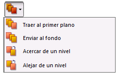 • uno de los comandos Enviar al fondo, Traer al frente, Traer adelante y Enviar atrás en el menú Objeto,