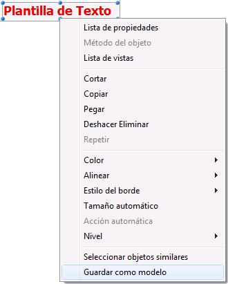 El comando Guardar como modelo, disponible en el menú contextual del editor cuando se hace clic sobre un objeto, guarda el objeto como