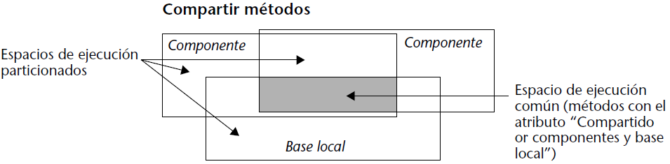 Otros objetos comparten el mismo espacio de ejecución entre la base local y los componentes. El empleo de estos objetos requiere tomar más precauciones pero permite a la base local y a los componentes comunicarse mutuamente. Estos objetos se llaman “compartidos” o “no-particionados”.