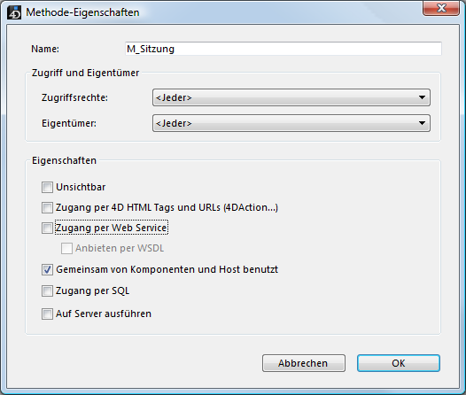 Diese Konfiguration wird im Dialogfenster Methodeneigenschaften über die Eigenschaft Gemeinsam von Komponenten und Host Datenbank benutzt festgelegt: