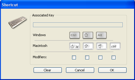 To change the shortcut of an operation, click the corresponding Edit button. The following dialog box appears: