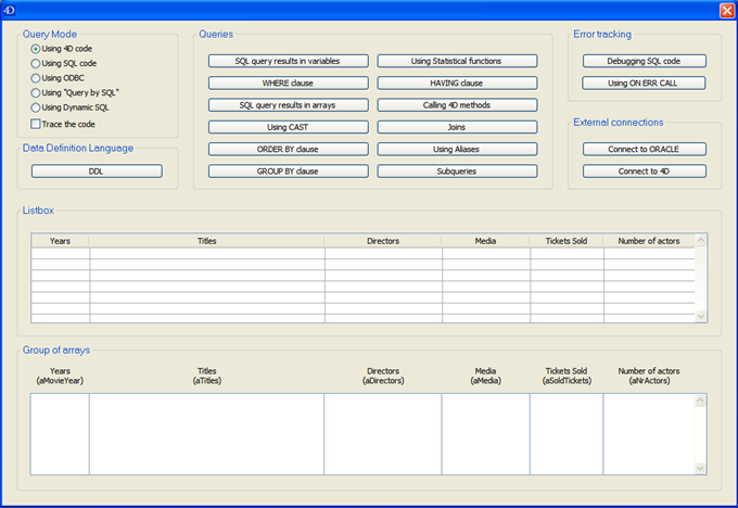 O objetivo deste tutorial não é ensiná-lo a trabalhar com SQL (para isso pode ser encontrada documentação e links na Internet), nem ensinar como você usar e/ou programar em 4D. Em vez disso, seu objetivo é mostrar como trabalhar com código SQL dentro do código 4D, como recuperar dados usando comandos SQL, como passar parâmetros e como obter resultados depois de uma consulta SQL.