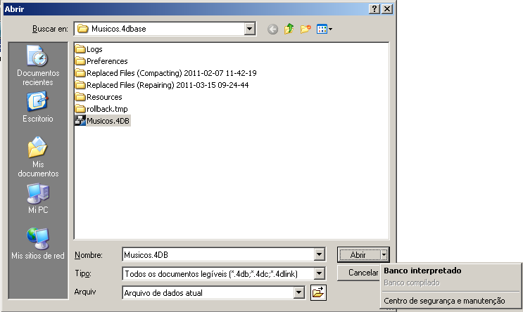 Logo você pode, simplesmente, selecionar o banco a ser examinado e clicar no botão Abrir.