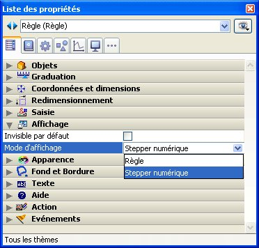 Note : Pour que le stepper fonctionne avec une variable heure ou date, il est impératif de définir son type dans la Liste de propriétés ET de la déclarer explicitement via la commande C_HEURE ou C_DATE.