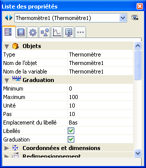 Plusieurs propriétés spécifiques sont définies dans le thème “Graduation” de la Liste des propriétés :