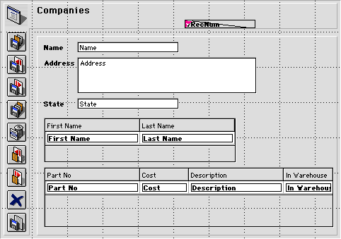 Voici le formulaire pour la table [Companies] qui affiche les enregistrements liés venant des tables [People] et [Parts].