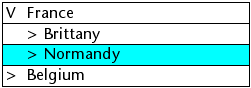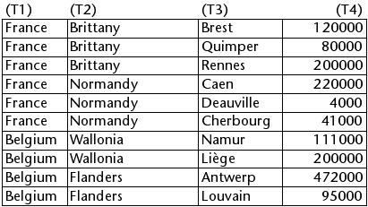 Nous souhaitons sélectionner la ligne de rupture "Normandie" dans la représentation hiérarchique de ces tableaux :