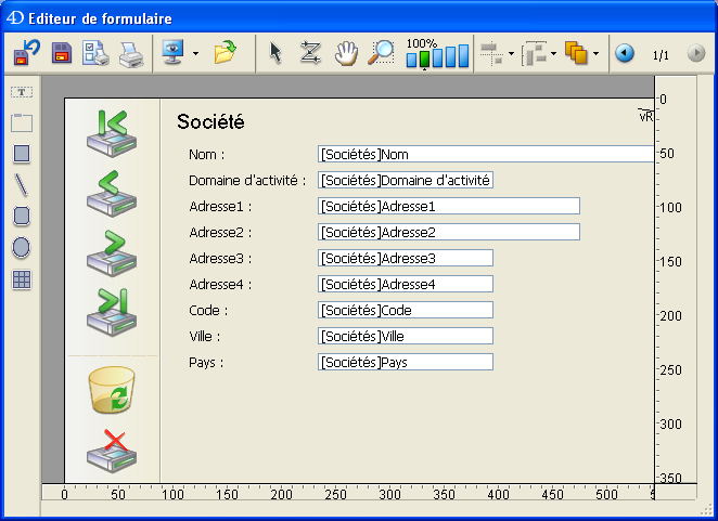 Pour une description de l’éditeur de formulaires standard de 4D, reportez-vous à la section L'Editeur de formulaires.