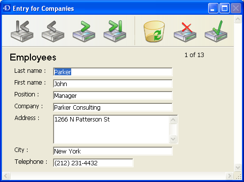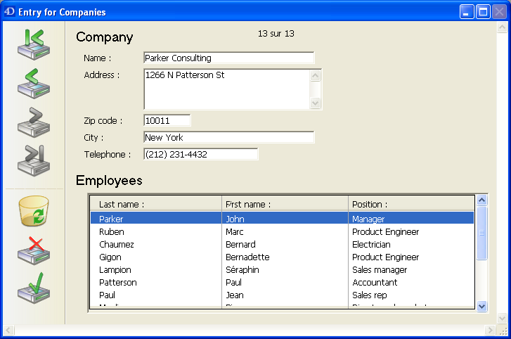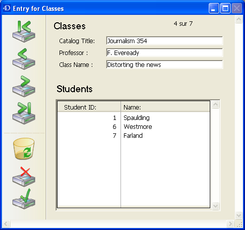 4Dはサブレコードを管理する基本的なニーズに応える3つの標準アクション、サブレコード編集、サブレコード削除、サブレコード追加を提供します。 フォームに複数のサブフォームインスタンスが含まれる場合、フォーカスを持つサブフォームにアクションが適用されます。