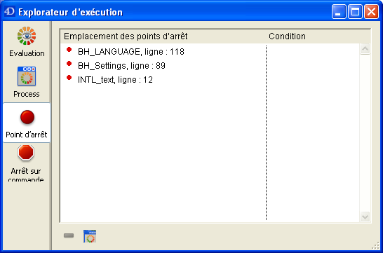 • La colonne de droite affiche la condition optionnellement associée au point d'arrêt.