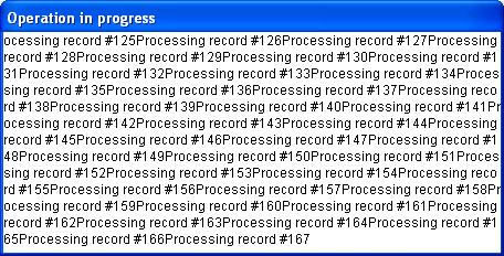 MESSAGE("Processing record #"+String($vlRecord)+Char(Carriage return))