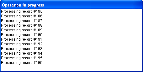 O exemplo a seguir processa uma seleção de registros e chama MESSAGE para informar ao usuário sobre o progresso da operação: