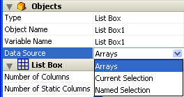 リストボックスオブジェクトに関連付けられた変数を使用して、オブジェクト行の選択の取得、設定、保存を行います。