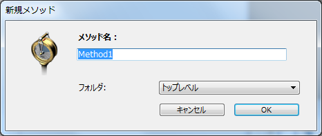 新規メソッドダイアログが表示されます。 - メソッド名を指定してOKをクリックします。