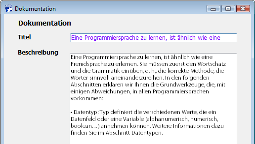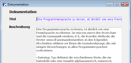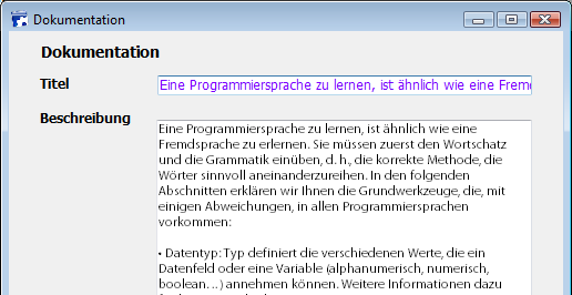 Es gibt nie Zeilenumbrüche: Der Text wird immer in einer einzigen Zeile angezeigt. Enthalten Felder bzw. Variablen vom Typ alphanumerisch oder Text Zeilenumbrüche, wird der Text nach der ersten Zeilenschaltung entfernt, sobald der Bereich geändert wird: