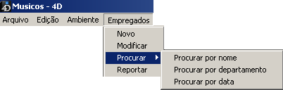 Note que a linguagem 4D permite criar e administrar barras de menus e menus totalmente por programação, sem utilizar o editor de menus. Para maiores informações sobre este ponto, consulte Menus no Manual de Linguagem de 4D.