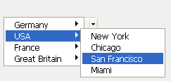 Um menu suspenso hierárquico tem um submenu associado a cada um de seus elementos. Este é um exemplo de um menu hierárquico: