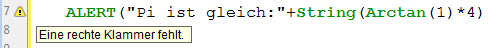 , um den fehlerhaften Ausdruck zu markieren. Bewegen Sie die Maus über das Symbol, erscheint ein Hilfetipp mit der Beschreibung des Fehlers: