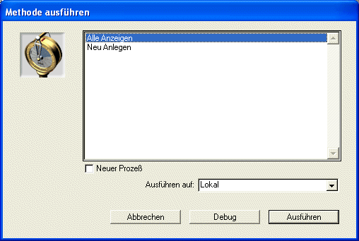 Wählen Sie im Menü Start den Befehl Methode, erscheint das Fenster Methode ausführen: