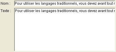 Note : Les retours chariot ne sont pas utilisables dans les objets de type alpha.