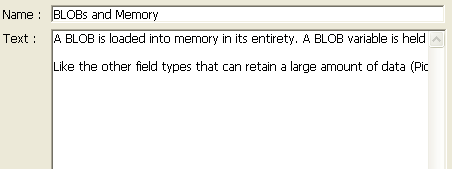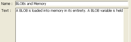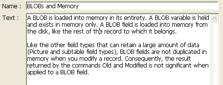 改行は行われません。テキストは常に一行で表示されます。文字やテキストのフィールドや変数が改行文字を含んでいる場合、エリアが更新されるとすぐに最初のキャリッジリターンより後のテキストが取り除かれます: