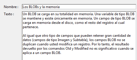 No hay retornos de línea: el texto se muestra siempre en una sola línea. Si el campo o la variable Alfa o Texto contiene retornos de carro, el texto situado tras el primer retorno de carro se elimina tan pronto como se modifique el área: