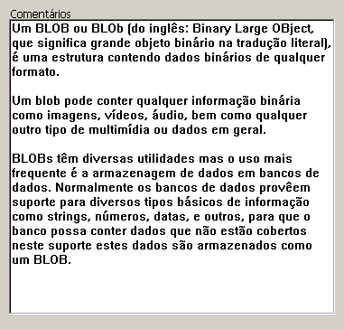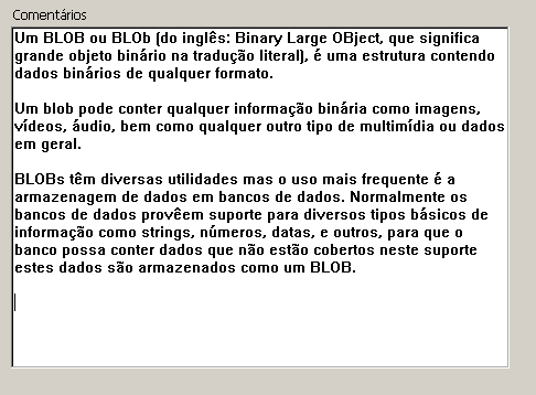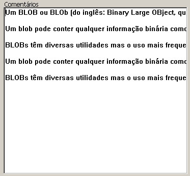 Nas áreas de uma só linha, o texto é mostrado até o primeiro retorno de carro ou até que a última palavra se possa mostrar completa. 4D insere os retornos de linha, é possível deslocar o conteúdo da área pressionando a tecla flecha para baixo.