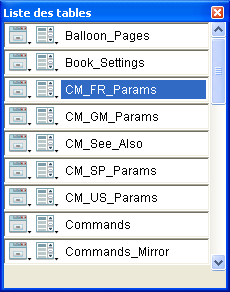 Cette liste contient les noms des dernières tables affichées durant la session :