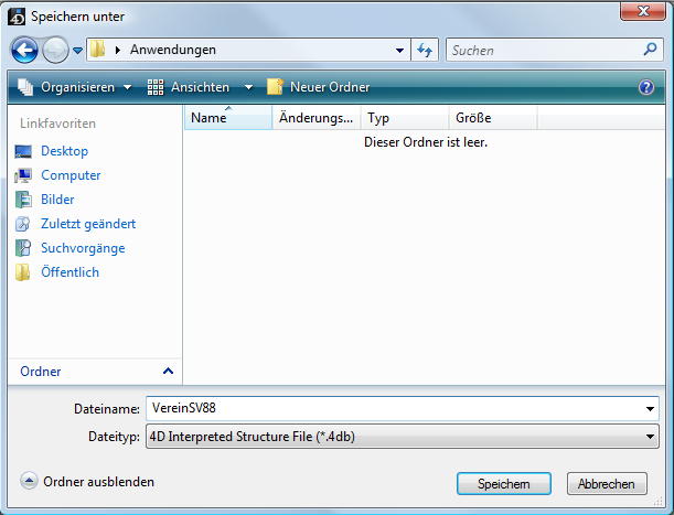 Ein Standard-Sichern Dialog erscheint, in dem Sie Name und Speicherort der Datenbank wählen können: