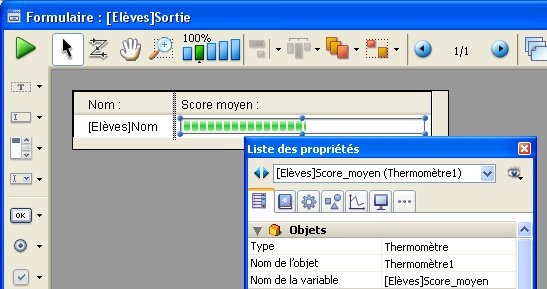 Les possibilités offertes par ce principe sont multiples. Il permet par exemple d’associer un champ numérique à un thermomètre afin de représenter une valeur sous forme graphique en liste :