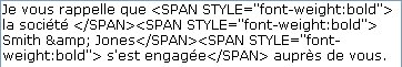 Vous pouvez constater que le texte inséré a été encapsulé au sein d'une paire de balises de style supplémentaires. Ces balises correspondent au style du caractère précédent l'insertion. Ce mécanisme permet de garantir un affichage correct des champs multistyles dans tous les cas de figure.