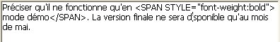 Passez dans nouvTexte le texte à insérer. La commande OBJET FIXER TEXTE STYLE est destinée aux manipulations de texte stylé (multistyle), contenant des balises de type <span>. Dans tous les autres cas (notamment en cas de manipulation de texte non stylé mais contenant les caractères <, > ou &), vous devez utiliser la commande OBJET FIXER TEXTE BRUT. Si vous passez à la commande OBJET FIXER TEXTE STYLE un texte brut contenant des caractères <, > ou &, la commande ne fait rien. Ce principe de fonctionnement est nécessaire car l'insertion directe d'une chaîne telle que "a>b" au sein d'un texte stylé va fausser l'analyse interne des balises <span>. Dans ce cas, le caractère "<" doit être préalablement encodé "<", ce qui est effectué par la commande OBJET FIXER TEXTE BRUT (voir également l'exemple de cette commande).
