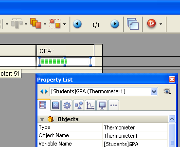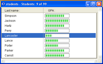 Multiple possibilities are offered by this principle. For example, it means that you can associate a numeric field with a thermometer in order to display values graphically in lists: