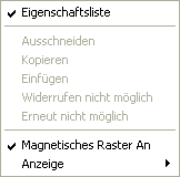 Klickt der Benutzer außerhalb eines Objekts, erscheinen die standardmäßigen Anzeigebefehle des Formulareditors: Eigenschaftenliste, Magnetisches Raster an und Anzeige der Editorwerkzeuge: