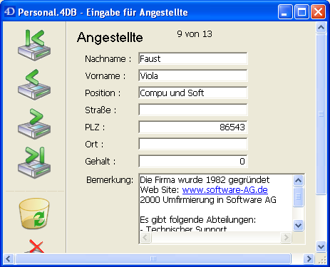 Enthält ein Datenfeld oder eine Variable vom Typ Alpha oder Text eine URL, d.h. ein String, der mit http, ftp, www oder mailto beginnt, wird sie automatisch hervorgehoben. Klickt der Benutzer unter Windows mit gedrückter Strg-Taste, auf Mac OS mit gedrückter Befehlstaste in den Bereich, wird die URL direkt im standardmäßigen Web Browser ausgeführt. Unter Windows erscheinen URLs in blau und unterstrichen: