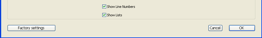 環境設定および設定ダイアログボックスでは、変更された設定内容は太字で表示されます: