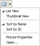 You can set the display mode and sort criterion of the picture library list using commands associated with the options button located below the list: