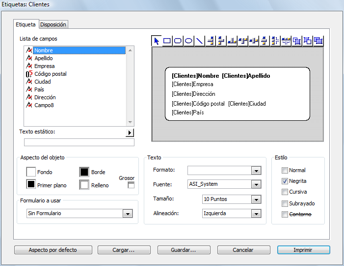 Nota:si la tabla fue declarada “invisible” en el entorno Diseño, no se mostrará el asistente de etiquetas.