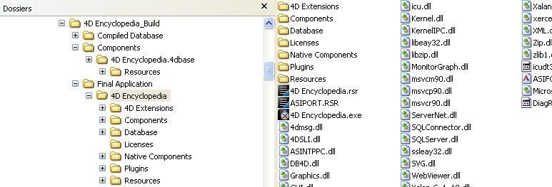 - Les dossiers 4D Extensions et Resources ainsi que les diverses librairies (DLL) et fichiers nécessaires au fonctionnement de l’application.
