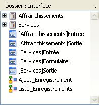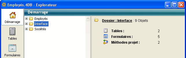 Les objets de type Table, Formulaire et Méthode projet peuvent être placés dans des dossiers. Il est également possible de créer des sous-dossiers sur plusieurs niveaux.