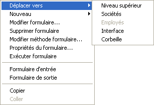 Pour cela, cliquez avec le bouton droit de la souris sur l’objet, le dossier ou la sélection. Le menu contextuel s’affiche. La commande hiérarchique Déplacer vers propose comme destinations possibles la totalité des dossiers et sous-dossiers existants :