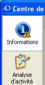 La page “Informations” fournit diverses informations relatives à l’environnement 4D et l’environnement système, la base de données et les fichiers de l’application. Chaque page d’information est accessible via des onglets situés dans la partie supérieure de la fenêtre.