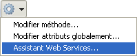 Vous pouvez afficher l’assistant Web Services depuis la page Méthodes. Pour cela, choisissez la commande Assistant Web Services... dans le menu d’options de la page.
