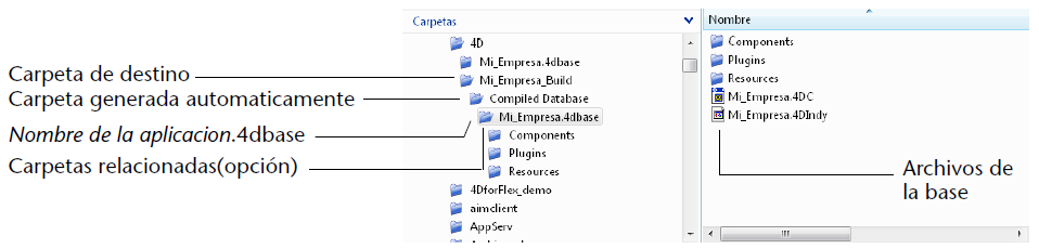 - En una carpeta de tipo “MiBase.4dbase,” que tiene propiedades específicas bajo Mac OS (ver Extensión .4dbase ) — MiBase es el “Nombre de la aplicación” definido,