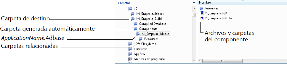 Cuando selecciona esta opción, las carpetas relacionadas con la base se copian en la carpeta Compiled Database folder: “Plugins,” “Resources,” “Components” y “Extras.” Para mayor información sobre estas carpetas, consulte Arquitectura de las bases .
