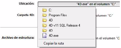La ubicación de esta carpeta pude variar dependiendo de la versión o del lenguaje de su sistema operativo. Para mayor información sobre la ubicación de esta carpeta, consulte el comando Get 4D folder.