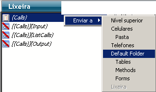 O submenu Enviar a > mostra as pastas presentes no banco (para mais informação, consulte a seção ). Se o banco de dados não contém pastas, somente aparece disponível a opção Nível Superior. Quando escolhe uma opção deste submenu, os objetos selecionados  são restaurados e movidos para a pasta escolhida como destino. Se escolhe Nível superior, a seleção se localiza no primeiro nível, não em nenhuma pasta.